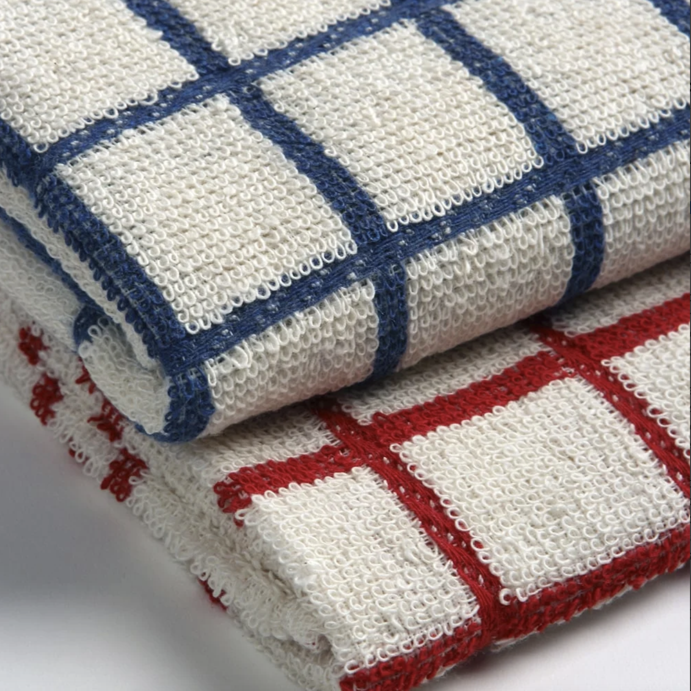 Paño absorbente de alta calidad en blanco con detalles rojos. Ideal para secar vajilla o limpiar superficies. Resistente, práctico y fácil de lavar, perfecto para el uso diario.